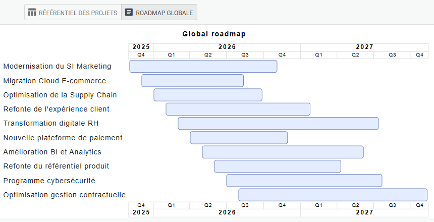 - Visualisation des impacts des projets sur une application ou sur un domaine fonctionnel